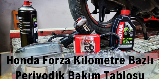 Honda Forza periyodik bakımında kullanım zamanına göre değişiklik gösteren bir servis ihtiyacı oluşsa da. Genel olarak bakacak olursak Honda Forza periyodik bakım hizmeti yapılırken ampullerinin ve debriyaj boşluğunun, bujilerin, genel somun ve cıvataların, süspansiyonun ve egzozun, yağ, hava filtrelerinin ve soğutucunun, fren ve debriyaj sıvılarına bakılır ve kontrol edilir.